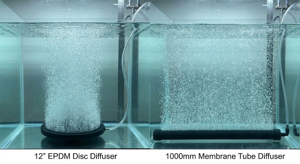एआई और इंजीनियरिंग मॉडल को प्राथमिकता दें ऑक्सीजन स्थानांतरण दक्षता (ओटीई) . बारीक बुलबुला डिफ्यूज़र (बुलबुले <3 मिमी पैदा करने वाले) तीन कारणों से मोटे बुलबुला सिस्टम से बेहतर हैं: