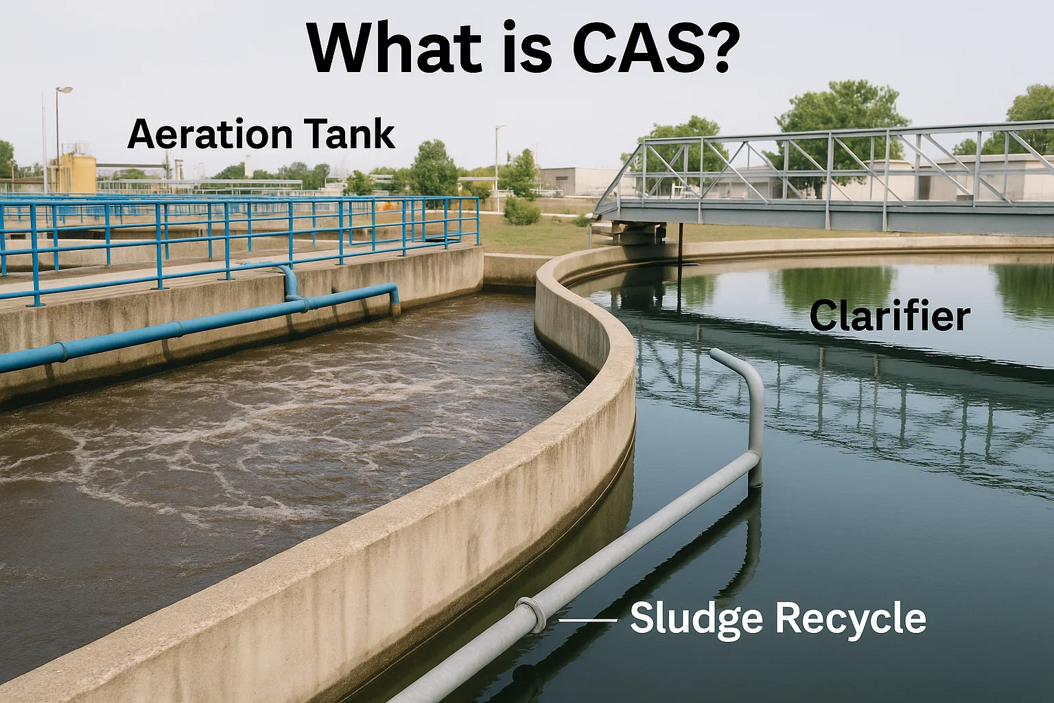 CAS एक सरल, प्रभावी है मिक्सर-सेटलर मॉडल जो सूक्ष्मजीवों के लिए प्रदूषकों को खाने के लिए उत्तम परिस्थितियाँ बनाता है, और फिर उन सूक्ष्मजीवों को साफ़ पानी से अलग कर देता है।