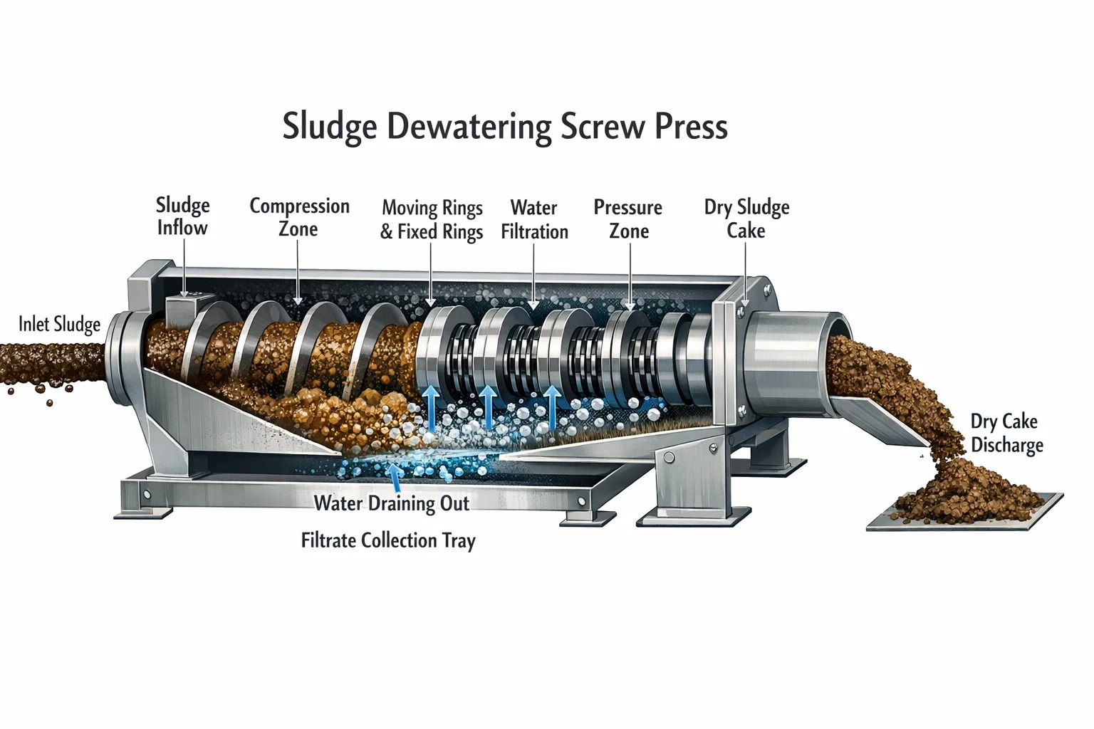 3. बैक-एंड सॉलिड्स: स्लज डीवाटरिंग स्क्रू प्रेस